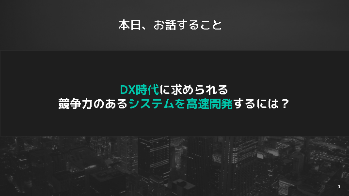 そこで本セミナーでは、DX案件における開発スピードの課題を解決する方法について解説します。
