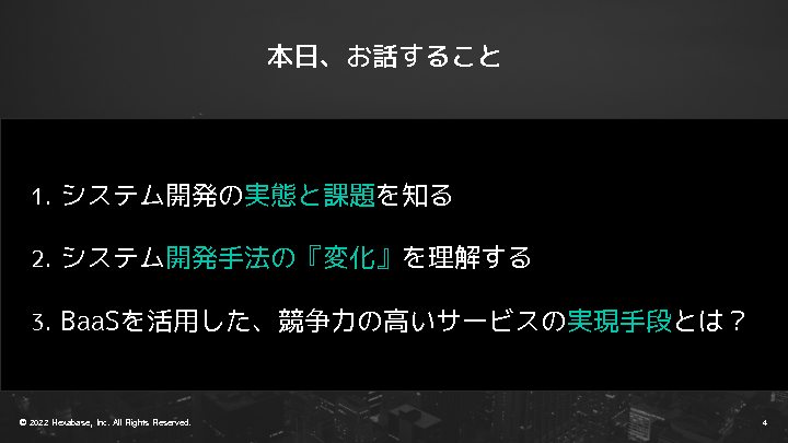 また、スピード感を上げ、コストを減らしながら開発を進める方法の一つとして、昨今話題のサービス「BaaS(Backend as a Service)」についても解説する予定です。
