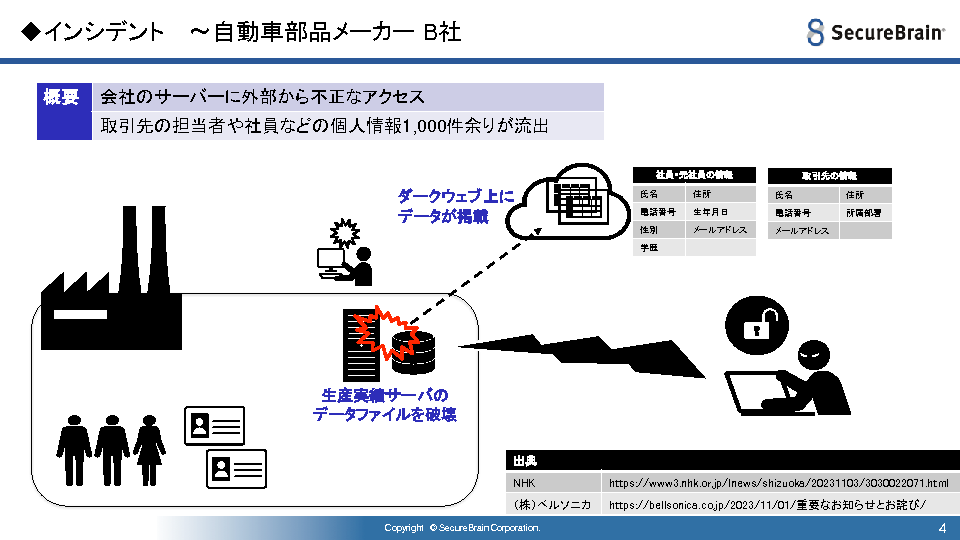 自動車メーカーから部品・素材メーカーまで数千社で構成される自動車業界では、特に企業間のサプライチェーンが狙われるようになりました。