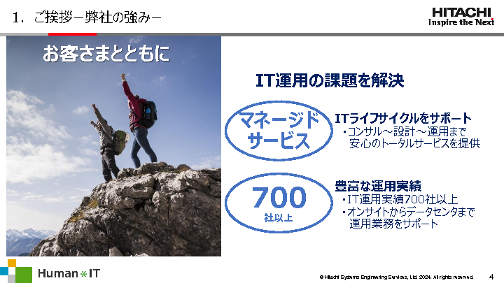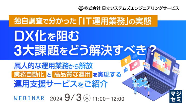 本セミナーは「ITシステム運用・保守業務を自社で実施しているが、現状うまくいっていない」と悩まれている企業・組織の運用担当部門の方を対象に開催します。日立システムズエンジニアリングサービスが独自で実施したアンケート調査と、製造業・金融・公共機関などのへのインタビュー調査の結果をご紹介。IT運用業務の実態を踏まえて、運用業務における主要課題をより詳細に明らかにします。