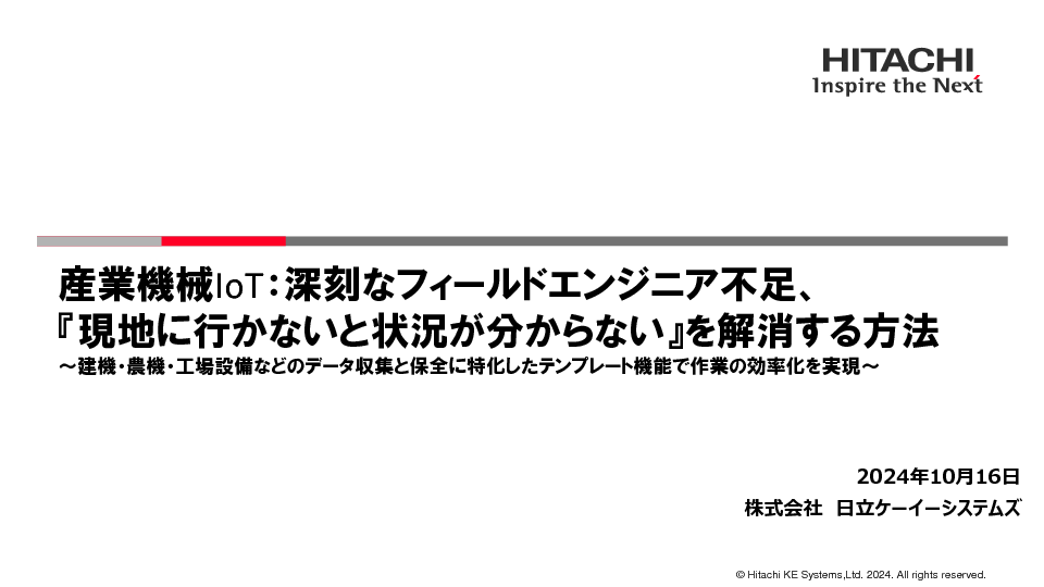 産業機械IoT:深刻なフィールドエンジニア不足、『現地に行かないと状況が分からない』を解消する方法 ~建機・農機・工場設備などのデータ収集と保全に特化したテンプレート機能で作業の効率化を実現~