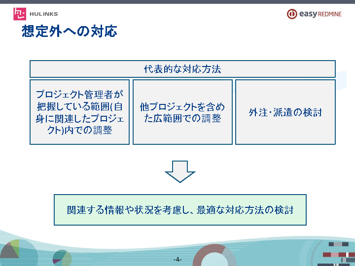 想定していなかった事態に対して、プロジェクト管理者は納期のみならずコスト面でも計画を立て直す必要があります。
