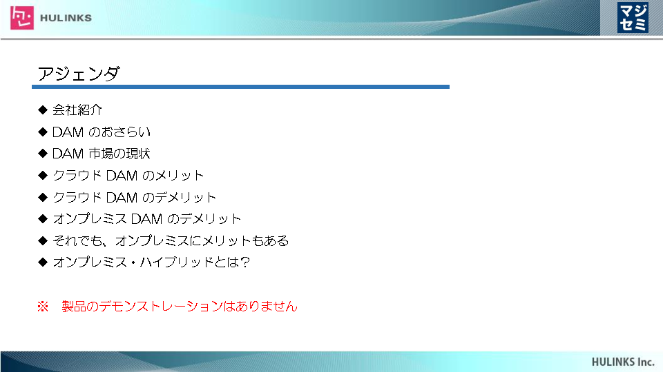 本セミナーは技術的な内容ではなく、システムを選択する際に検討すべきこと、各構成のメリット/デメリットを解説し、今後のシステム導入に役立てていただくことを目的としています。