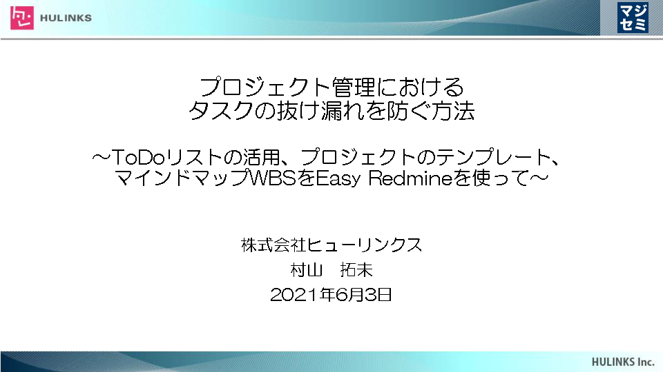 本セミナーでは、Easy Redmineのプロジェクトテンプレート機能、チェックリスト機能、To Doリスト機能を、ガントチャートを中心とした観点で解説、デモンストレーションします。