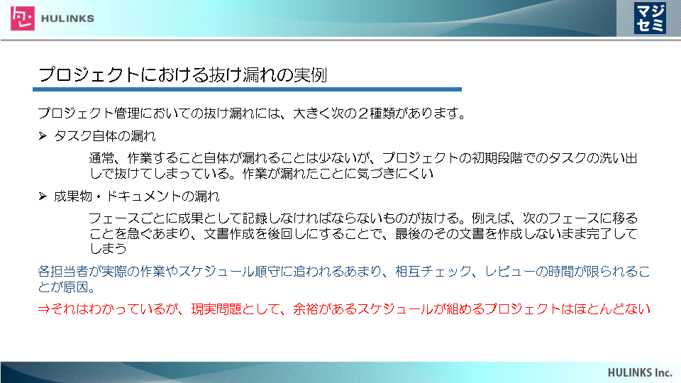 ・プロジェクトにおける流れと成果物の例(抜け漏れの例)