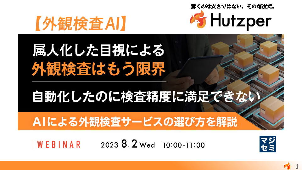 10:05~10:45 属人化した目視による外観検査はもう限界 自動化したのに検査精度に満足できない~AIによる外観検査サービスの選び方を解説~