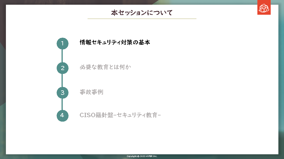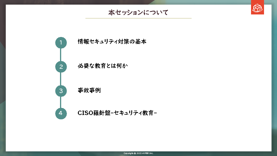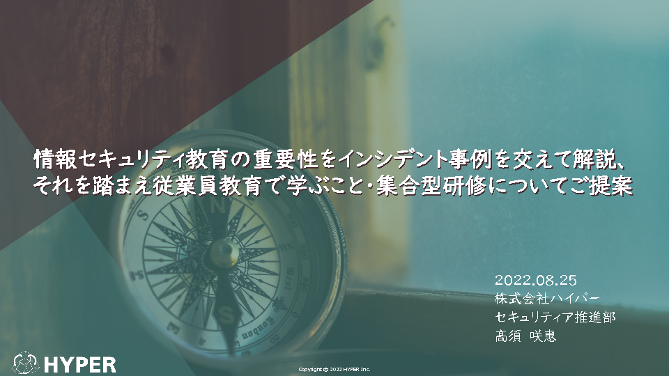 14:05~14:25 情報セキュリティ教育の重要性をインシデント事例を交えて解説、それを踏まえ従業員教育で学ぶべきこと・集合型研修についてご提案