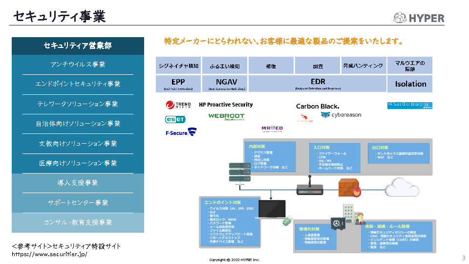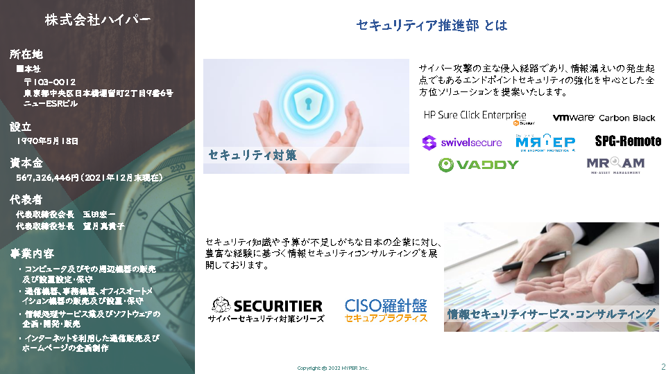 また、具体的な解決策として、ロールプレイングによるセキュリティ教育を提供する「セキュアプラクティス」をご紹介。