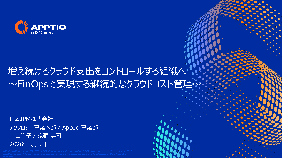 また、IBM Cloudability を活用した FinOps へのアプローチを通じて、クラウド費用をどのような切り口で捉え、どのように最適化していくのか、その全体像を分かりやすくお伝えします。