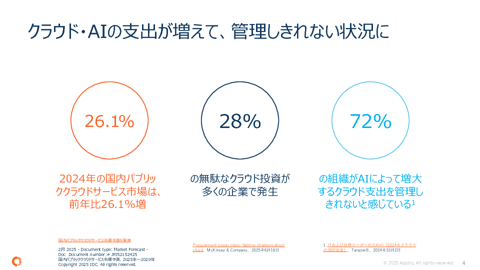 クラウド支出の増加や、マルチクラウド・AI利活用が進む中でクラウド費用の可視化がクラウド投資における重要な課題となった現状