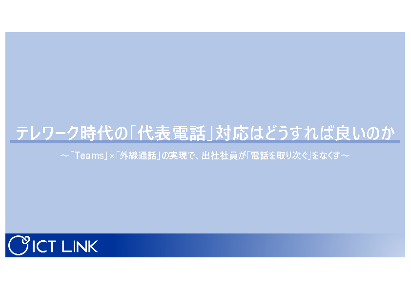 14:05~14:45 テレワーク時代の「代表電話」対応はどうすれば良いのか ~「Teams」×「外線通話」の実現で、出社社員が「電話を取り次ぐ」をなくす~