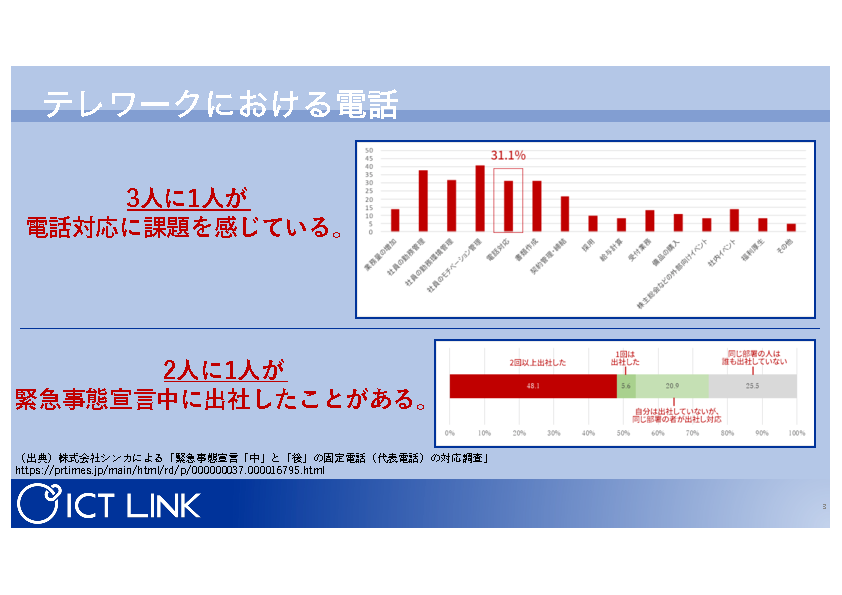 しかしながら、テレワークの浸透に伴い企業の「代表電話」が課題となっています。