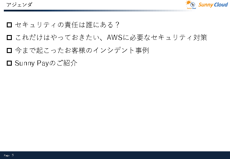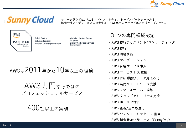 AWS移行や運用を支援するアイディーエス社のAWSリセールサービス「Sunny Pay」、クラウド利用料に保険料を含めることでコストを抑えつつAWSセキュリティのリスクヘッジを可能にするマーシュジャパン社のサイバー保険についても紹介する予定です。