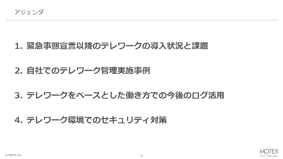 13:00~13:30 テレワークにおける端末管理の状況と今後のログ活用(MOTEX)