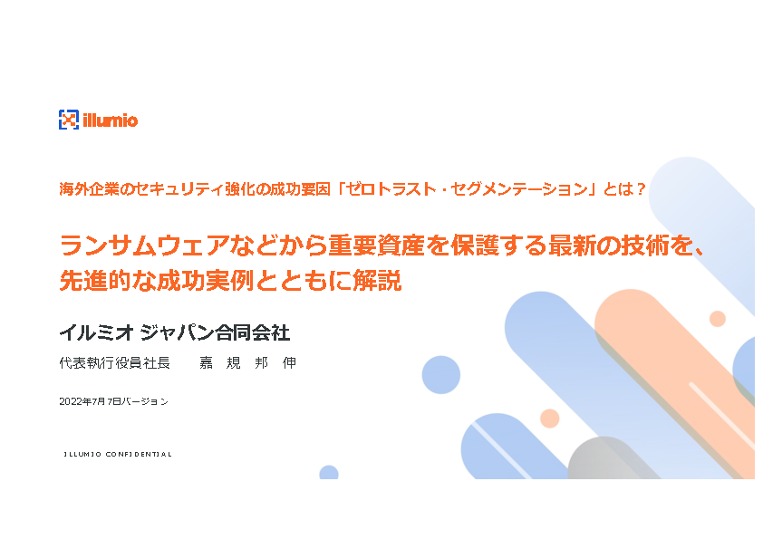 本セミナーでは、ゼロトラスト・セキュリティモデルに特化し、金融や医療、製造業界などを中心に多くの実績がある「セグメンテーションソリューション」を提供するイルミオ ジャパン合同会社の代表執行役員社長の嘉規 邦伸が登壇。