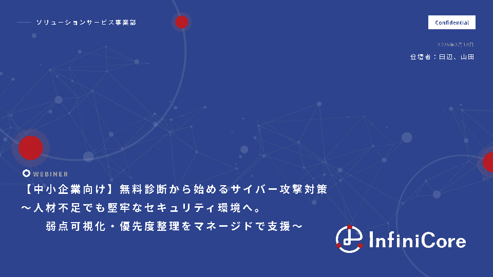 13:05~13:45 無料診断から始めるサイバー攻撃対策~人材不足でも堅牢なセキュリティ環境へ。弱点可視化・優先度整理をマネージドで支援~