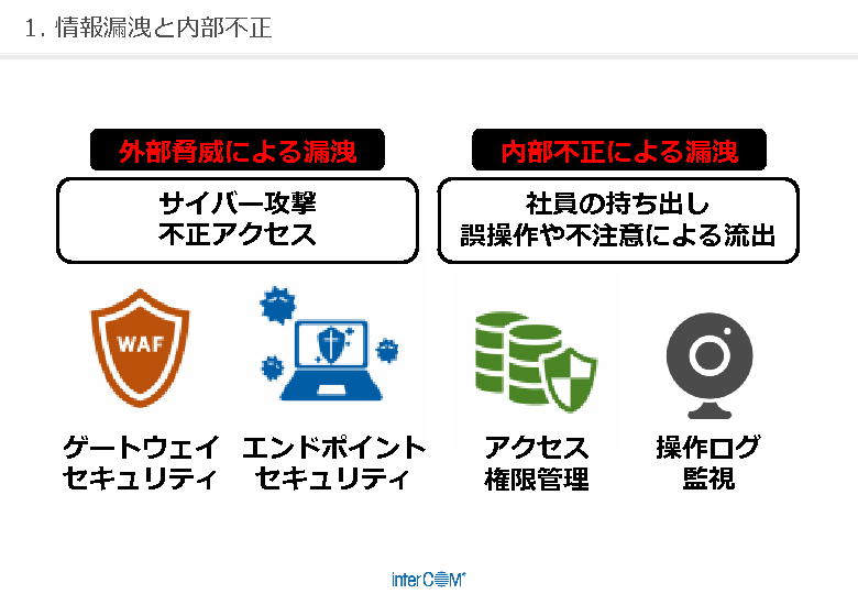 一般的にも、外部からの攻撃への対策に比べ、企業内での行動が原因となる不正や個人情報漏洩への対策は行いやすいと言われており、