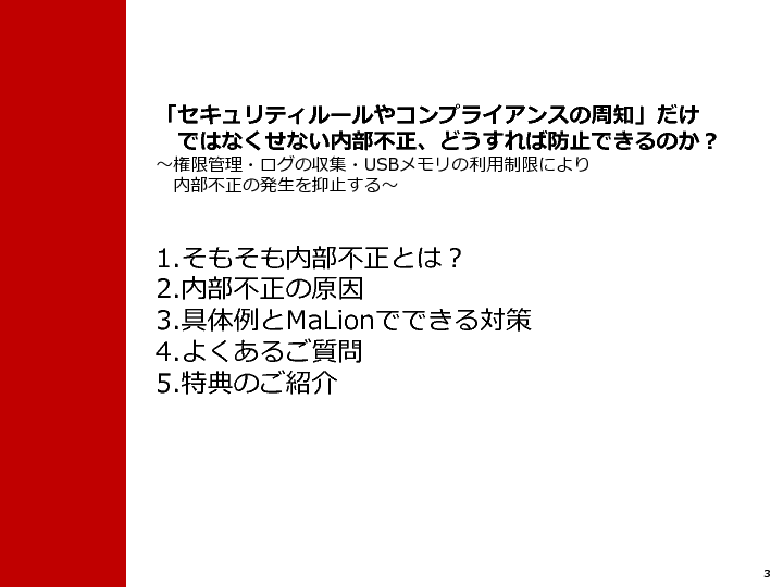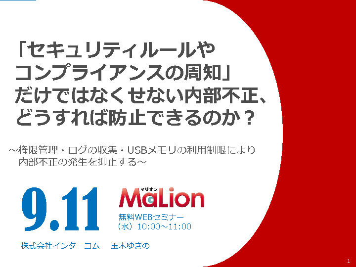 本ウェビナーでは、周知徹底だけでは防げない内部不正や情報漏洩事故の抑止力として活用するツール「MaLionCloud」をご紹介します。