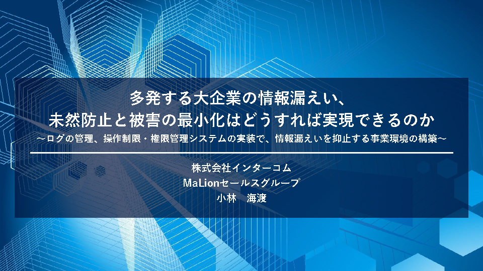 14:05~14:45 多発する大企業の情報漏洩、未然防止と被害の最小化はどうすれば実現できるのか ~ログの管理、操作制限・権限管理システムの実装で、情報漏洩を抑止する事業環境の構築~