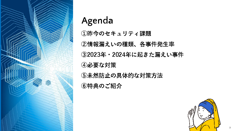 情報漏洩への対策を行いたいとお考えの情報システム部門のご担当者様・ご責任者様や、安定した事業環境を構築したいとお考えの経営層の方へおすすめの内容です。