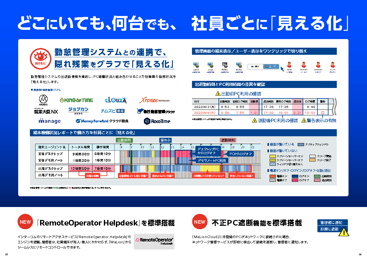 本セミナーでは、サプライチェーン評価制度に備える中小企業向けに、操作ログの取得から証跡提示までを一元的に支援する「MaLionCloud」を活用した具体的な対策を解説します。クラウド型で導入・運用の負担を最小限に抑えつつ、必要な証跡を自動的に蓄積できる仕組みにより、限られたリソースでも評価制度が求める水準に確実に準拠する方法を提示します。さらに、取引先からの監査や契約更新の際に即座に証跡を提示できることで、契約維持と信頼確保を実現し、安心してビジネスを継続できる体制を整えられます。