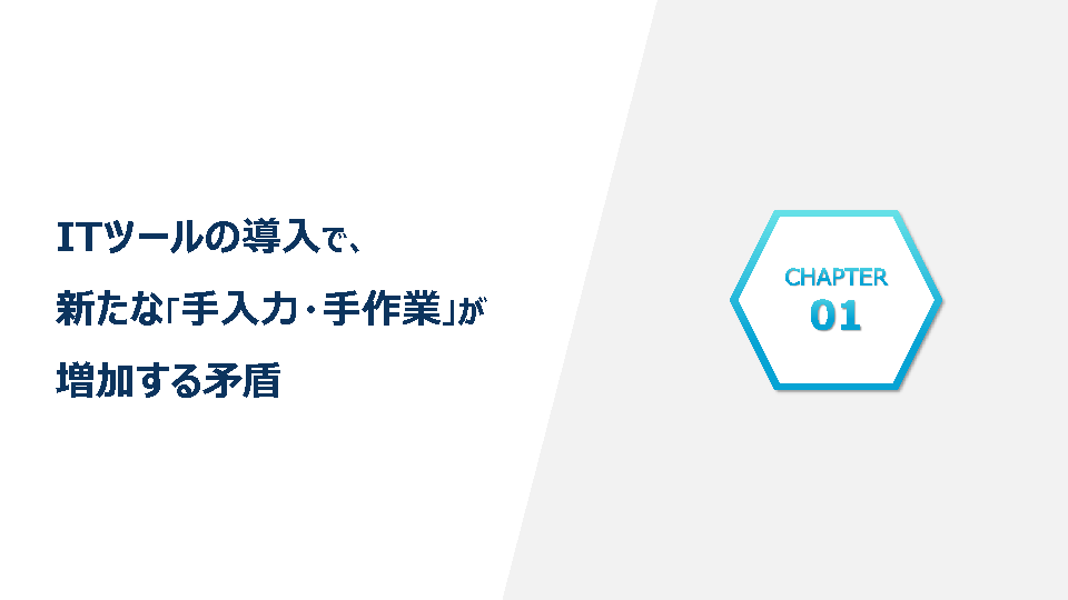 この分断が、システムとシステムの狭間に新たな「手入力・手作業」を生み出し、業務自動化実現の妨げとなっているのです。