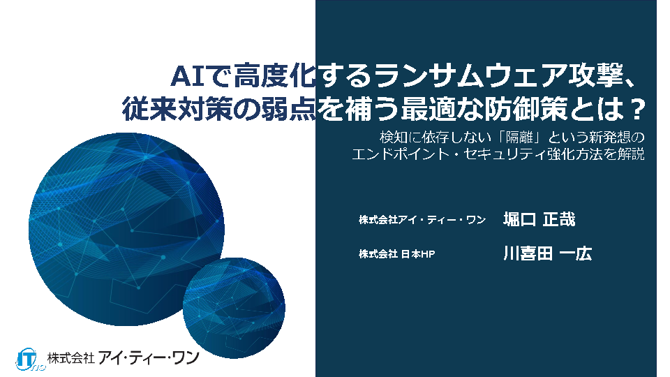 13:05~13:45 AIで高度化するランサムウェア攻撃、従来対策の弱点を補う最適な防御策とは? ~検知に依存しない「隔離」という新発想のエンドポイント・セキュリティ強化方法を解説~