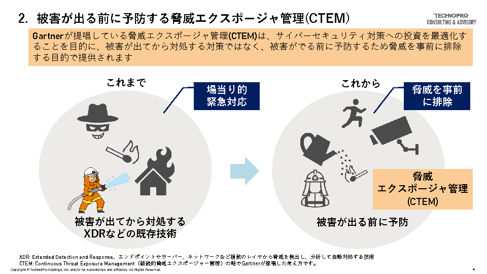 そうした中、海外では「脅威エクスポージャー管理:CTEM(Continuous Threat Exposure Management)」が浸透し始め、日本でも注目が高まりつつあります。
