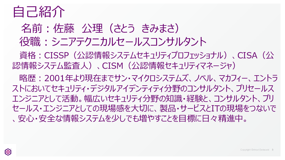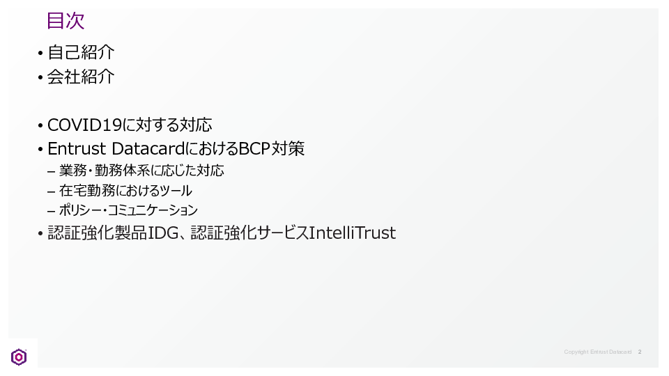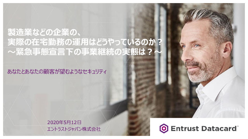 本セミナーでは、(セキュリティソフトウェアをご提供するIT企業ですが)キャッシュカードやクレジットカードのカード発行機などを製造・販売する、製造業としての側面を持つ、エントラスト・データカード社が、緊急事態宣言のもと、どのような在宅勤務のオペレーションを行っているのかについて、具体的に解説します。
