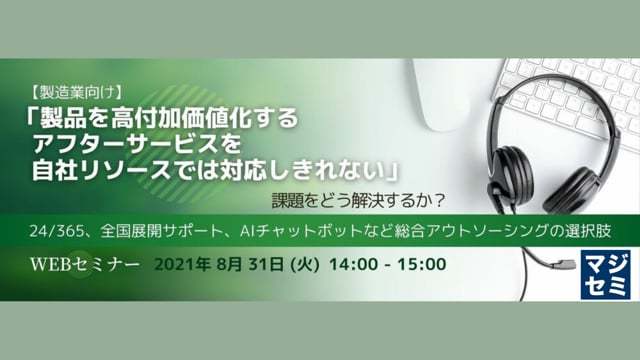 本セミナーでは、自社リソースを使わずにサービスデスクや全国展開のオンサイト保守、AIチャットボットといったマルチアフターサービスを実現する方法を解説します。現在、サービスデスクを運用しているが改善をしたい、サービス範囲を拡大したいといった製造業のカスタマーサポートや事業責任者様におすすめのセミナーです。