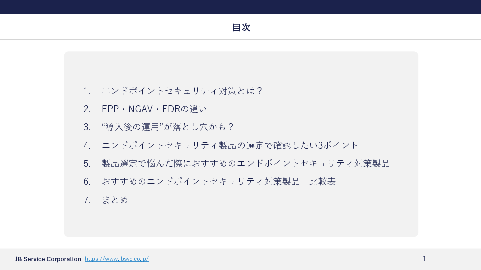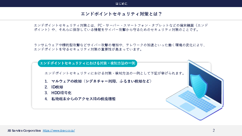 14:05~14:40 失敗しないエンドポイントセキュリティ製品の選び方とは?(JBサービス)