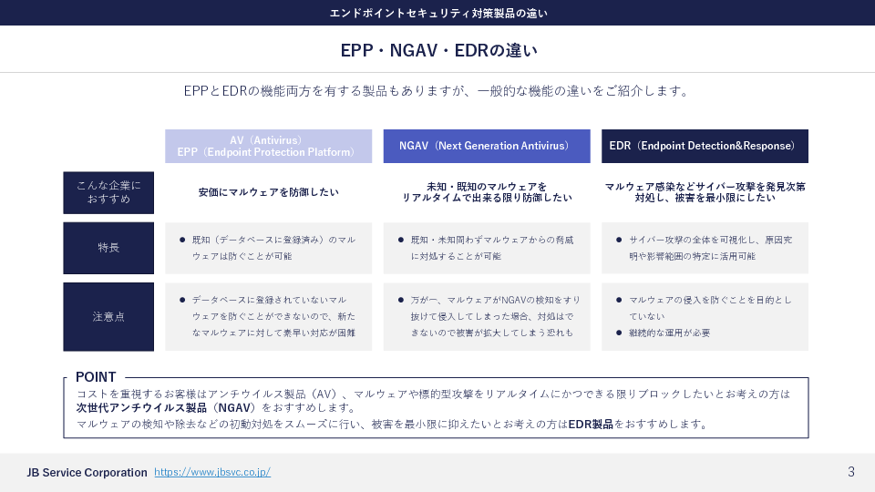 13:05~13:40 失敗しないエンドポイントセキュリティ製品の選び方とは?(JBサービス)
