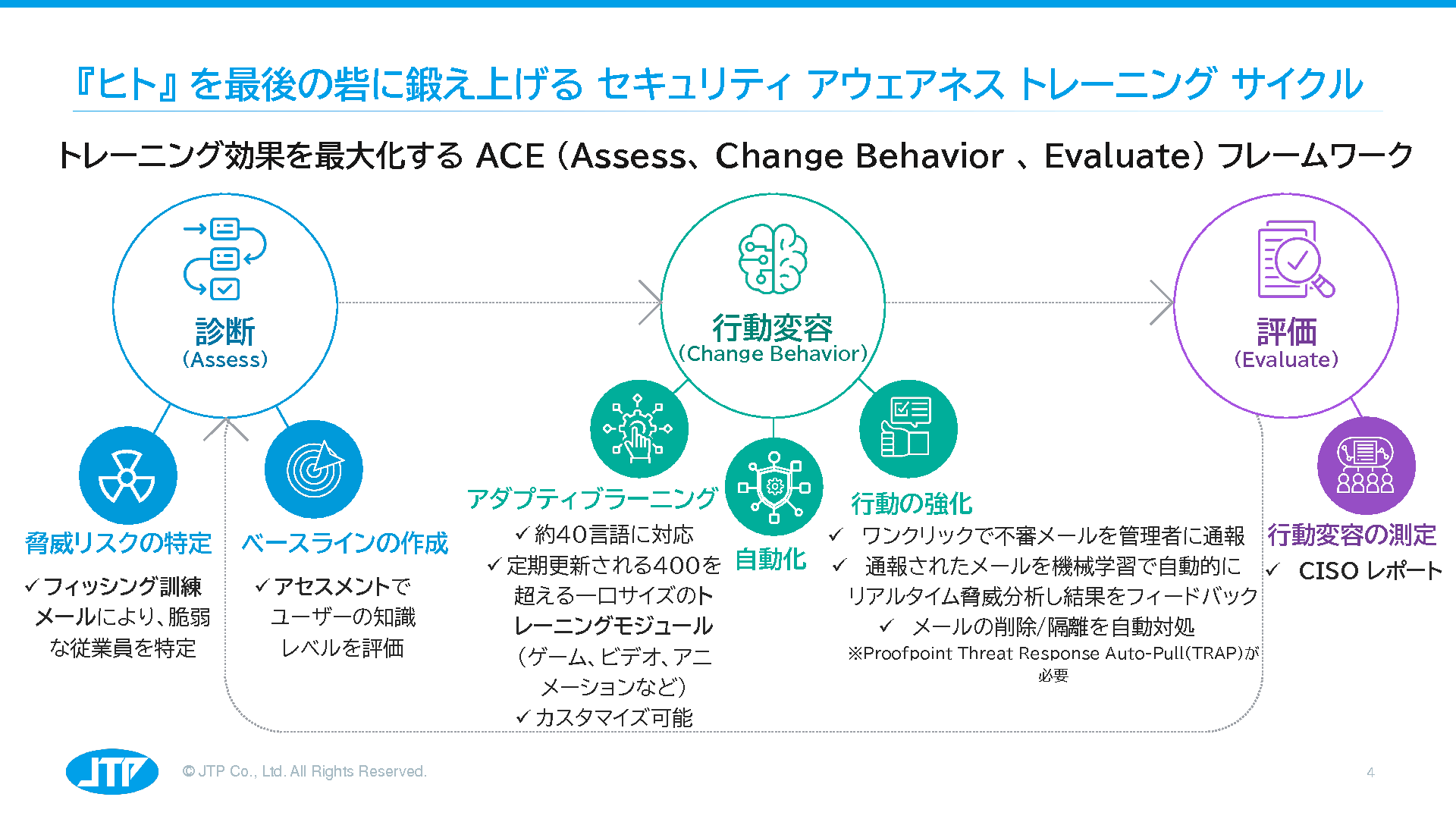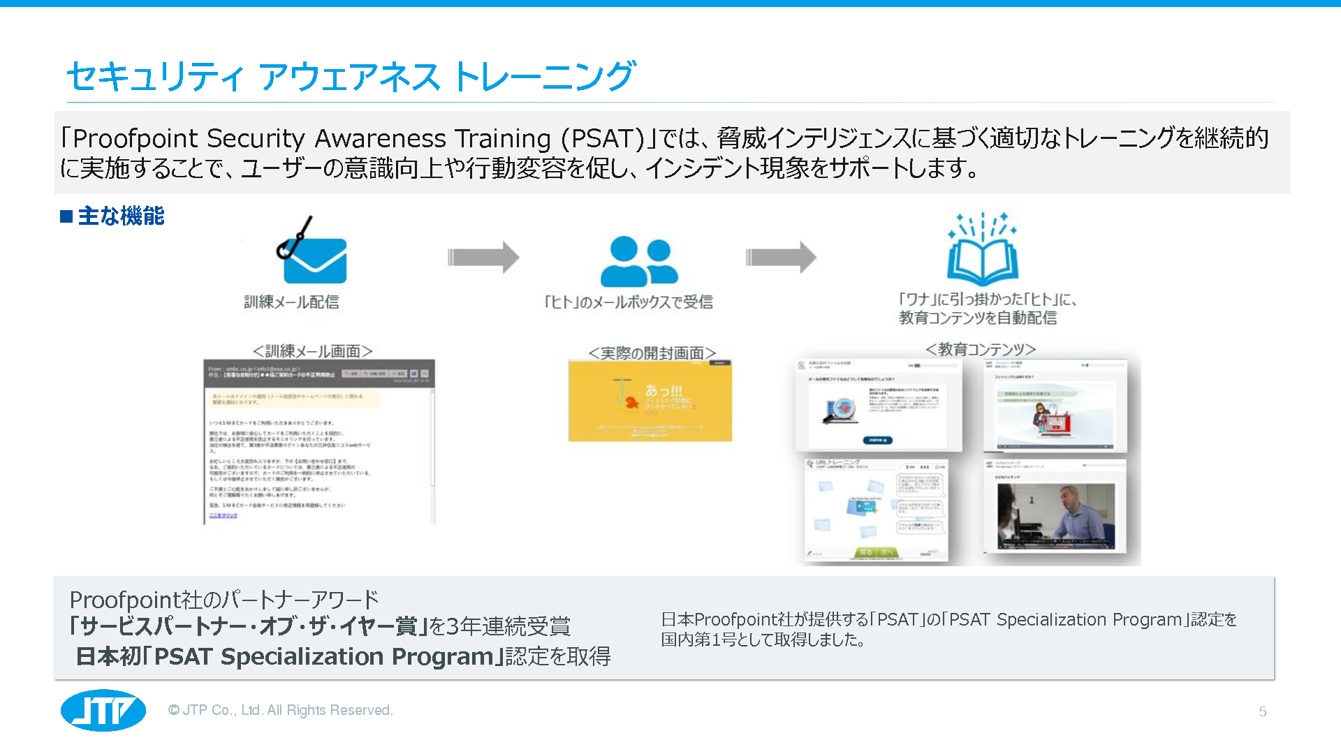 セキュリティベンダー各社が扱っているSATソリューションを導入しても、誤った運用をしてしまうと、従業員のセキュリティ意識向上を見込めません。Proofpointが提供するSATソリューション「Proofpoint Security Awareness Training」を活用した運用支援サービスを展開するJTPが、これまでの運用実績を踏まえたSAT運用のベストプラクティスをご紹介します。
