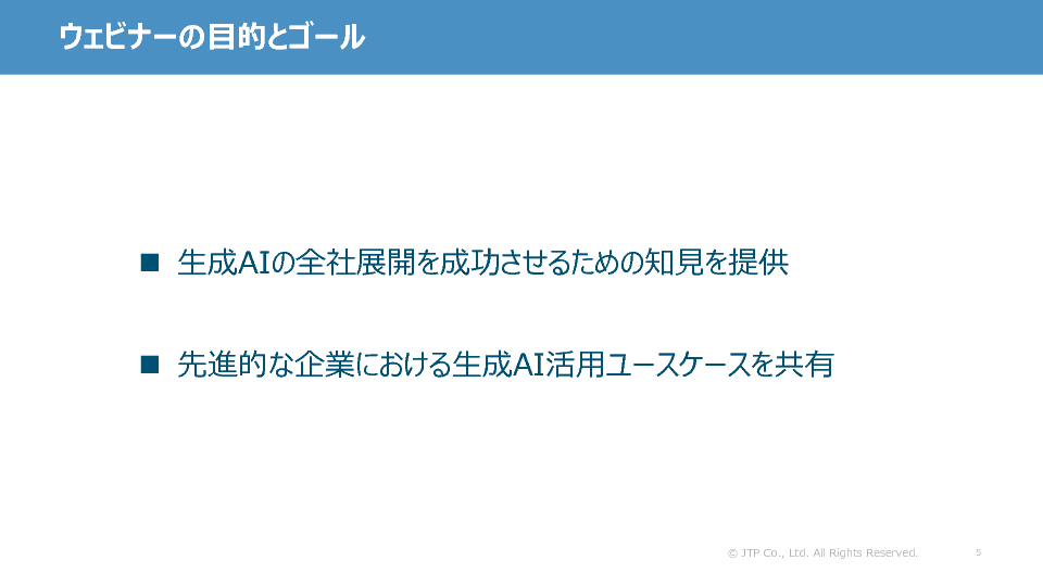 本セミナーでは、実際の顧客事例をもとに、生成AIの全社展開を成功に導くための具体的なヒントやノウハウをご紹介します。