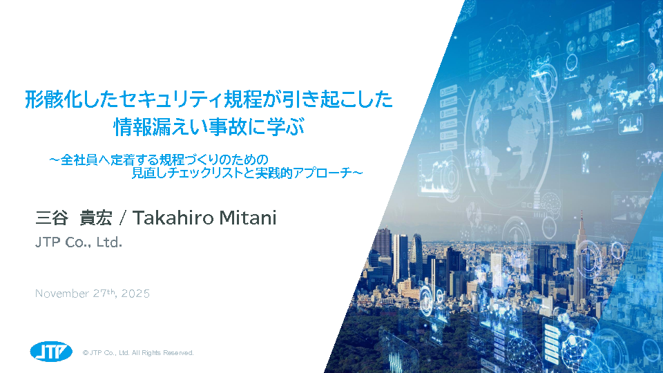 12:05~12:45 形骸化したセキュリティ規程が引き起こした情報漏えい事故に学ぶ ~全社員へ定着する規程づくりのための見直しチェックリストと実践的アプローチ~