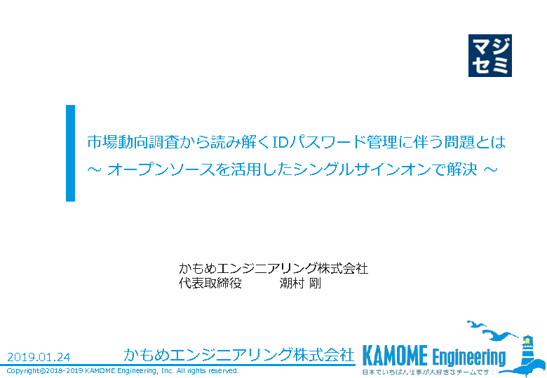 本セミナーでは、認証・ID管理の市場動向を解説するとともに、オープンソースを活用した認証基盤(シングルサインオン)の構築についてご紹介します。