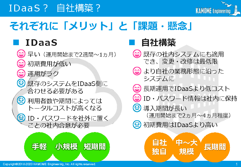 一方、クラウドサービスとして認証基盤を提供する「IDaaS」も注目されていますが、メリット/デメリットがあります。