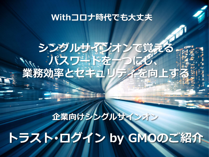 「トラスト・ログイン by GMO」はWebサービスごとにある複数のログイン情報を”ひとつにおまとめ”できる クラウド型シングルサインオンサービスです。ログイン情報をひとつにすることで、ログイン情報の紛失や、 複数サービスでのパスワードの使い回しを防げます。セミナーではデモンストレーションを交えてシングルサインオンについてご紹介します。