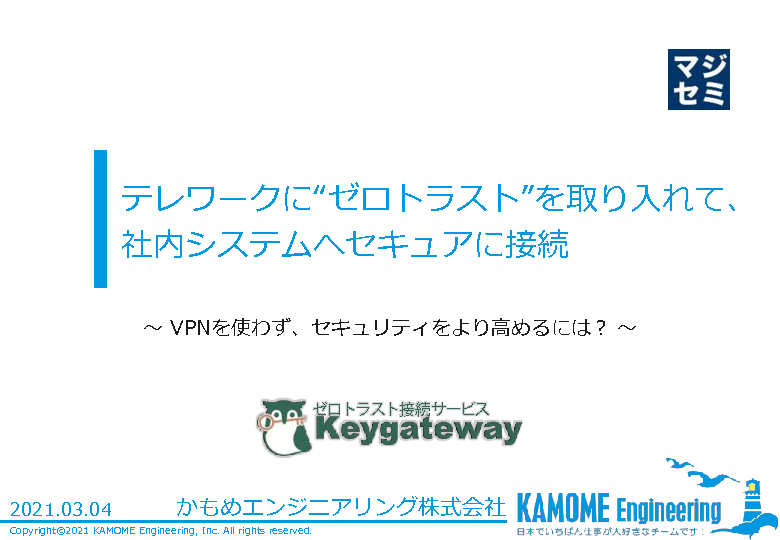 本Webセミナーでは、このようなVPNの課題について解説すると共に、「境界の中であっても信用しない」というゼロトラストの概念について説明します。