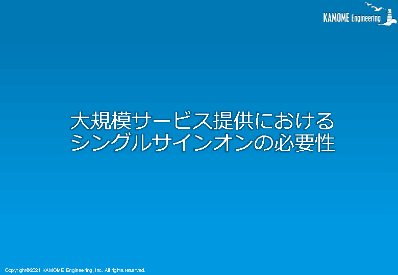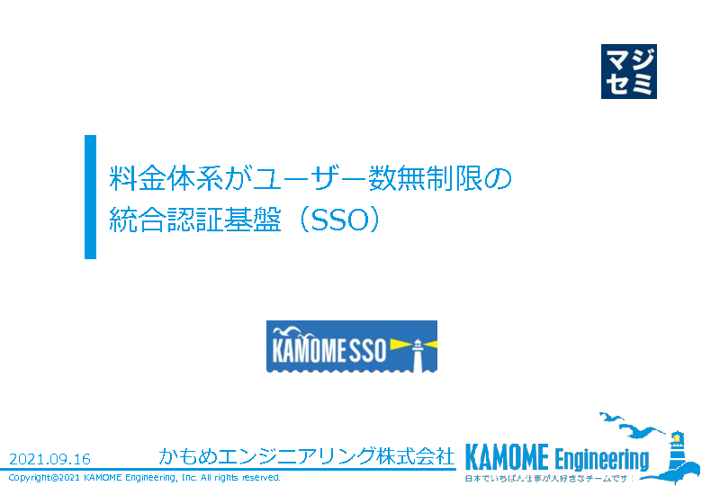 本セミナーでは、料金体系がユーザー数無制限の、統合認証基盤(SSO)「KAMOME SSO」をご紹介します。