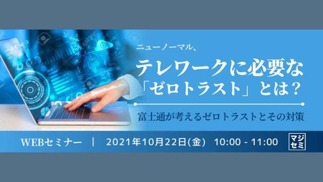 本セミナーでは、ニューノーマルと言われている時代背景、テレワークの導入が遅れている現状を踏まえて、その原因を考察するとともに、ゼロトラストの重要性とのその概要について解りやすく解説します。