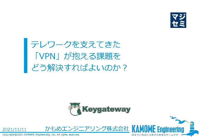 本セミナーでは、このようなVPNの課題を解決するため、VPNを使わない新しい社内システムへのアクセス方法「ゼロトラスト・ネットワーク・アクセス」について解説します。