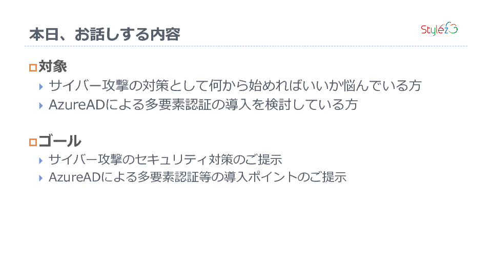 本セミナーでは、最近のサイバー攻撃の脅威と、多要素認証の必要性について解説した後、AzureADに多要素認証(MFA)を導入する際のポイントについて解説します。
