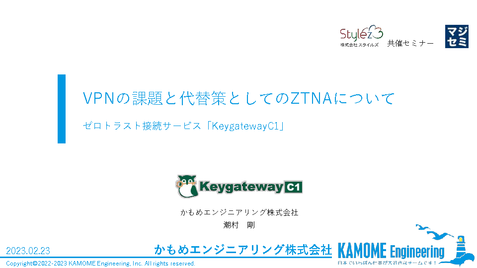本セミナーではまず、VPNの問題点やZTNAについてわかりやすく解説すると共に、難しいとされているゼロトラストやZTNAを簡単に実現する方法について、ゼロトラスト接続サービス「Keygateway C1」をベースに解説します。