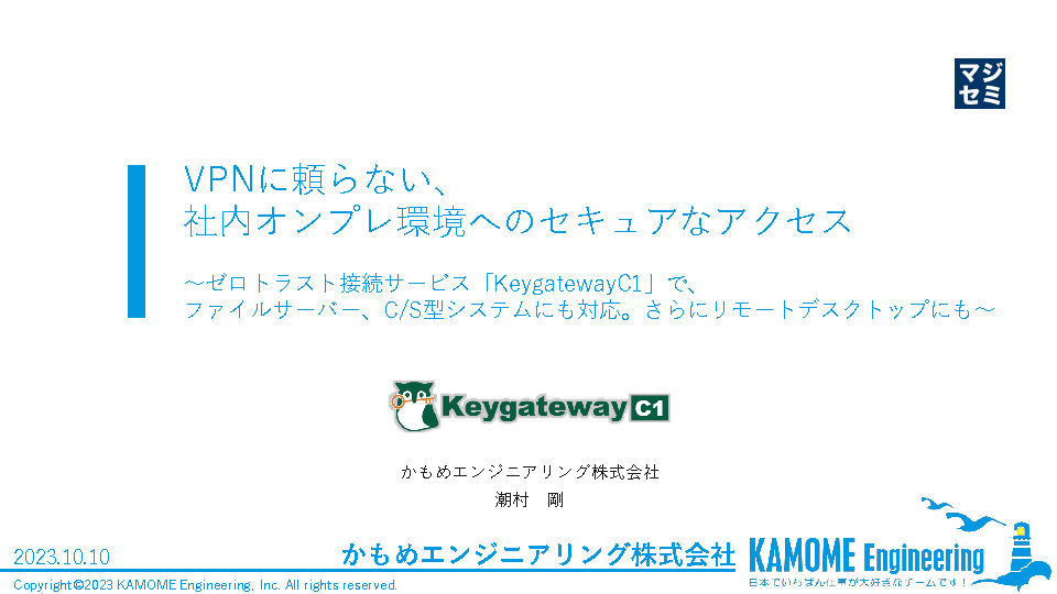 さらに、難しいとされているゼロトラストやZTNAを簡単に実現する方法について、ゼロトラスト接続サービス「KeygatewayC1」をベースに解説します。