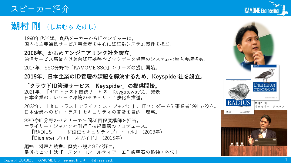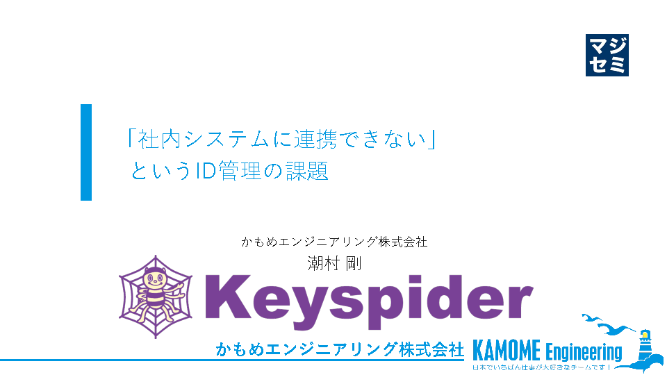 本セミナーでは、上記のようなID管理を取り巻く状況や課題について解説するとともにオンプレやスクラッチのシステムとも連携できる、国産クラウドID管理サービス「Keyspider」についてご紹介いたします。