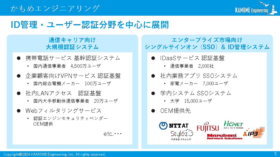 「KAMOME SSO」は数万~百万ユーザー規模のWebサービスや通信キャリア向けに導入・稼働実績を重ねてきました。