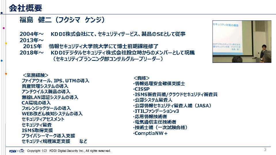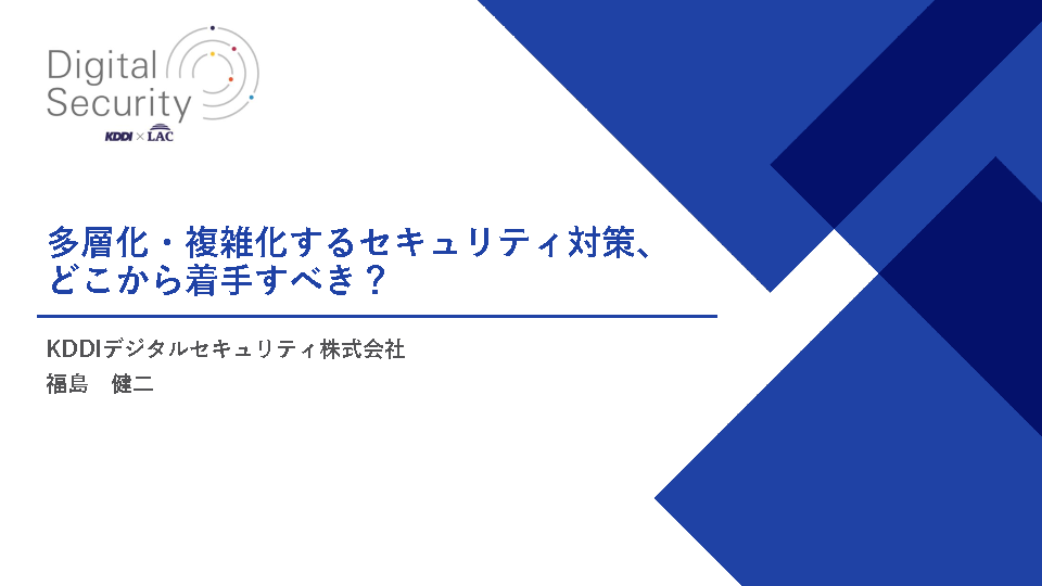 13:05~13:45 多層化・複雑化するセキュリティ対策、どこから着手すべき?~ 短期間で自社のセキュリティ対策を洗い出す簡易アセスメント「クイックアセス」のご紹介 ~