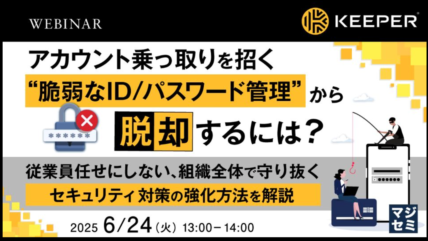 13:05~13:45 アカウント乗っ取りを招く“脆弱なID/パスワード管理”から脱却するには?~従業員任せにしない、組織全体で守り抜くセキュリティ対策の強化方法を解説~