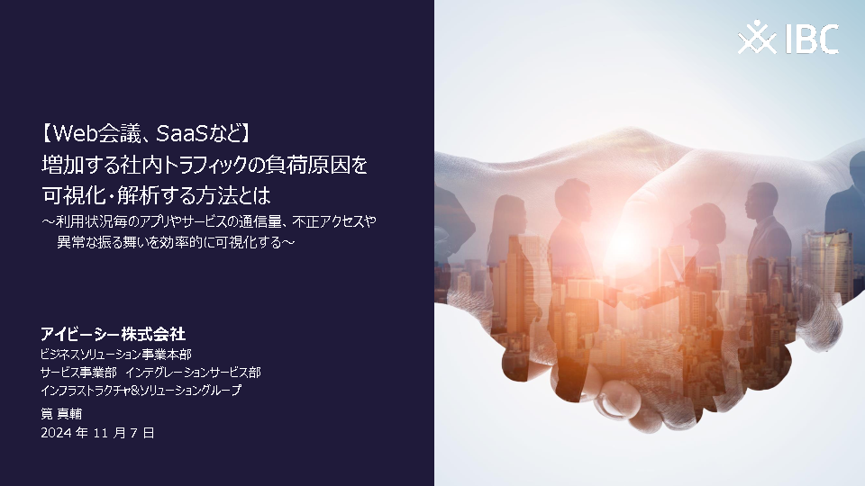 15:05~15:45 【Web会議、SaaSなど】増加する社内トラフィックの負荷原因を可視化・分析する方法とは(前半:アイビーシー株式会社 / 後半:キーサイト・テクノロジー株式会社)